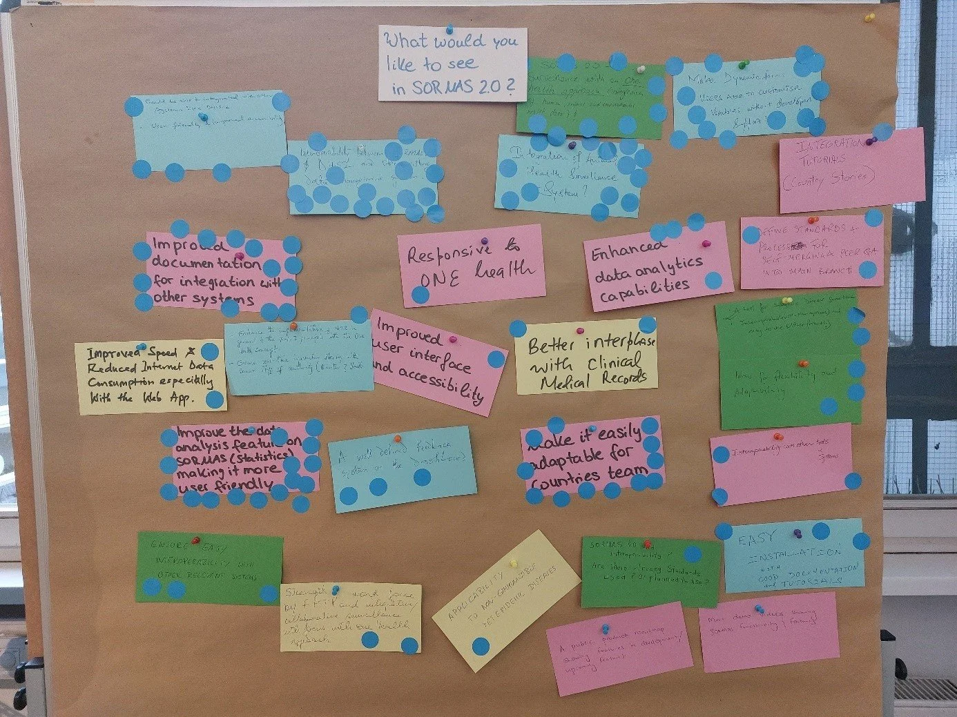 Topics selected by participants for the unconference session on Day 1 (“What would you like to see in SORMAS 2.0?”) were One Health, interoperability, and improvement of data analytics. On Day 2, the unconference topics selected around sustainability of SORMAS in countries and as a Global Good included: Partnerships with funding organizations, Partnership with universities and research institutions for SORMAS development, and Ownership.